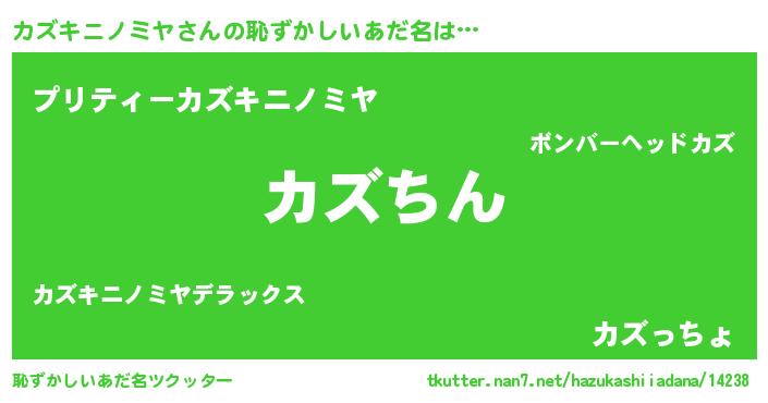 | 意味不明あだ名 | 『永久保存カズキニノミヤ』 |