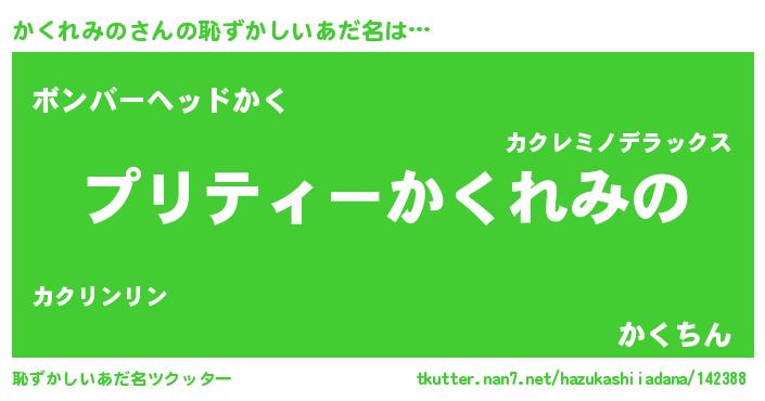 | ヘコむあだ名 | 『かくにー』『かくれみの(笑)』 |