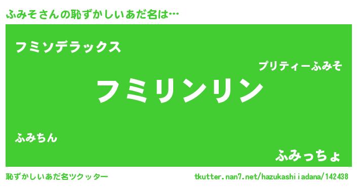 | ヒーロー風カッコイイあだ名 | 『天弓騎士フミ』『最強戦士フミソ』 |