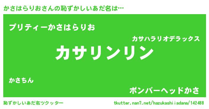 | 胡散臭い通販商品みたいなあだ名 | 『信頼と実績のサプリメント…その名も「かさはらりお」』 |
