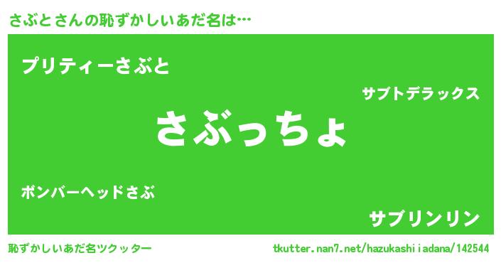 | 女子向けラノベタイトル風あだ名 | 『さぶとの婚約者』『さぶと様がみてる』 |