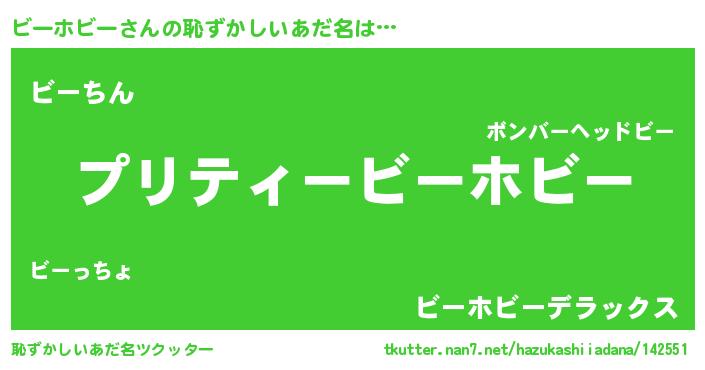 | ヘコむあだ名 | 『ビーふぇ~』『ビーホビー(遠い目)』 |