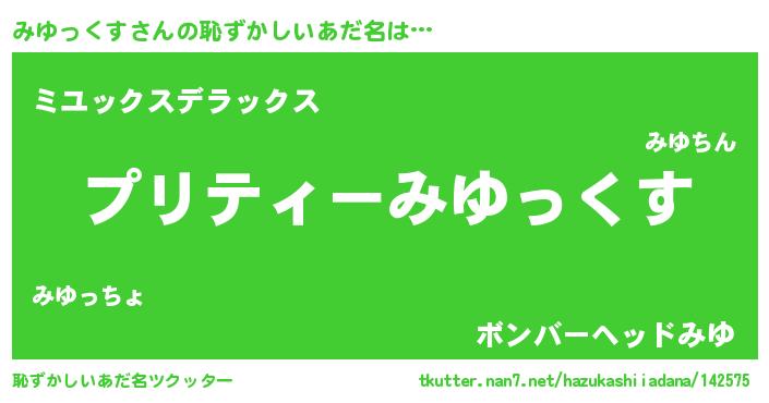 | 男性向けラノベタイトル風あだ名 | 『みゆっくすの憂鬱』 |