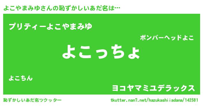 | 女子向けラノベタイトル風あだ名 | 『よこやまみゆの玉の輿計画!』 |