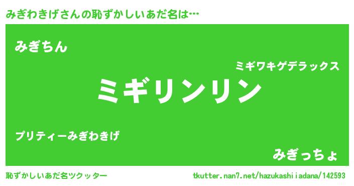 | ヘコむあだ名 | 『みぎを』『みぎわきげ(爆)』 |