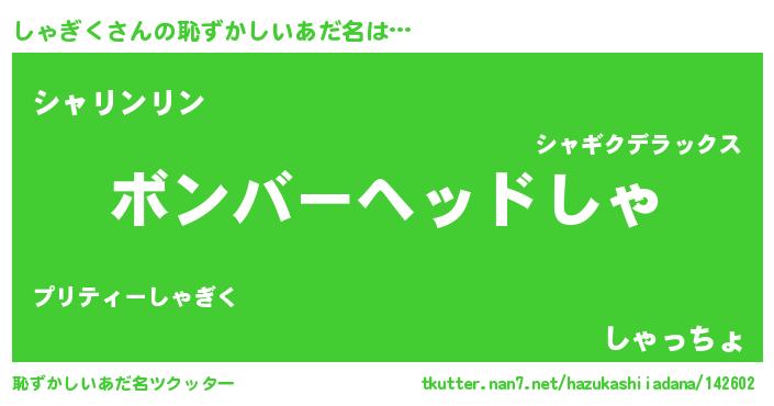 | ヒーロー風カッコイイあだ名 | 『正義の使者しゃぎく』『天弓騎士シャ』 |