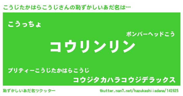 | 意味不明あだ名 | 『とにかく怪しいこうじたかはらこうじ』 |