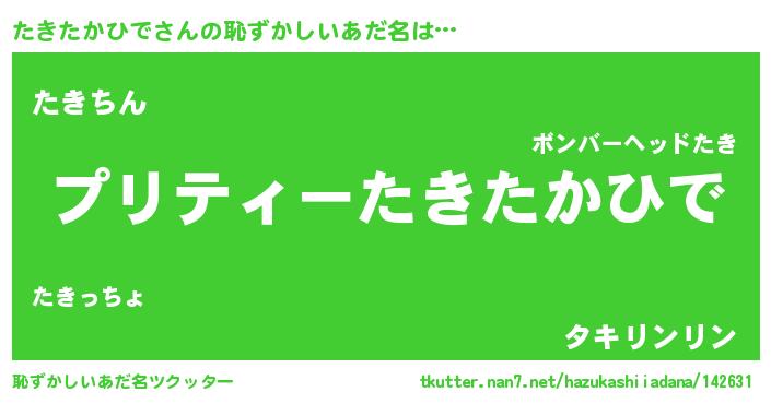 | ヘコむあだ名 | 『たきっふぃ~』『たきたかひで(苦笑)』 |