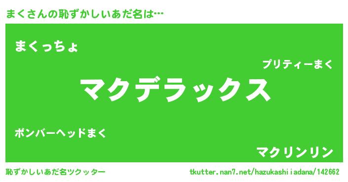 | 意味不明あだ名 | 『住所不定無職まく(8歳)』『自称まく』 |