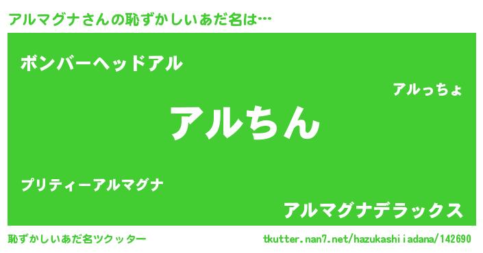 | 意味不明あだ名 | 『永久保存アルマグナ』『自称アルマグナ』 |