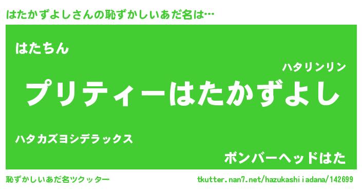 | ヒーロー風カッコイイあだ名 | 『スーパーハタカズヨシ』『仮面ハタダー』 |
