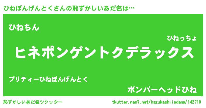 | ヘコむあだ名 | 『ひねぽんげんとく(爆)』『酢こんぶ』 |