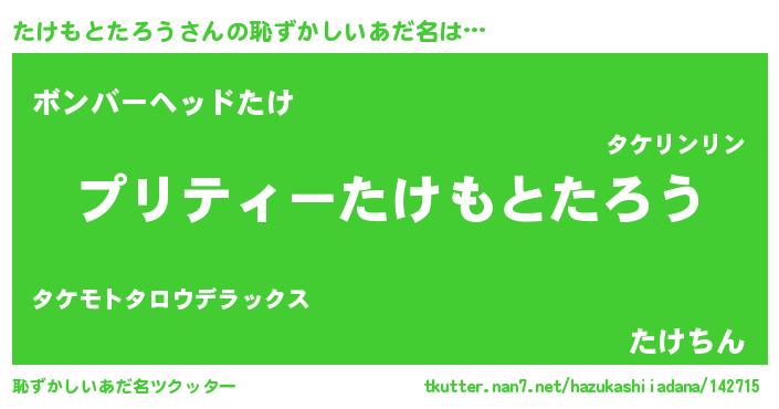 | 男性向けラノベタイトル風あだ名 | 『たけもとたろうの憂鬱』 |