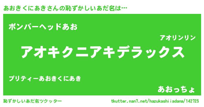 | 意味不明あだ名 | 『自称あおきくにあき』 |
