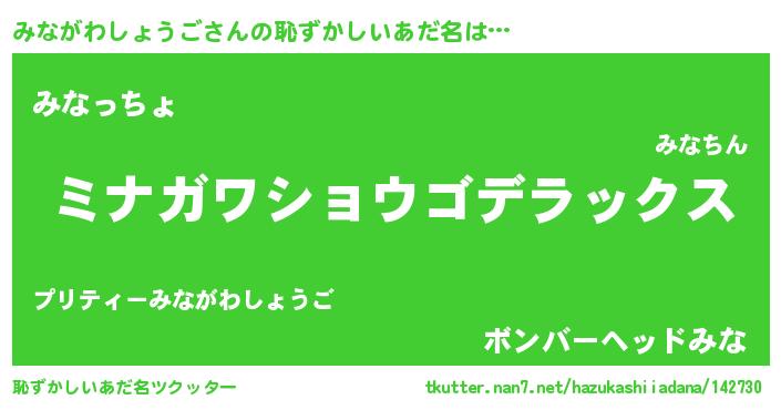 | ヘコむあだ名 | 『なまこ酢』『みながわしょうご(笑)』 |