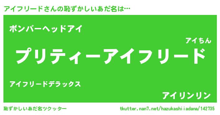 | 男性向けラノベタイトル風あだ名 | 『アイフリードスレイヤー』 |