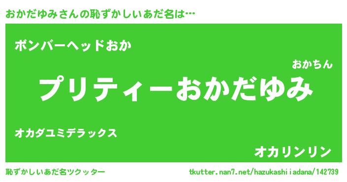 | 肩書あだ名 | 『おかだゆみ店長』『おかだゆみ少将』 |