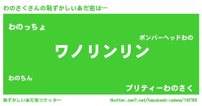 | ヒーロー風カッコイイあだ名 | 『黄金騎士ワノ』『ウルトラわのさくマン』 |