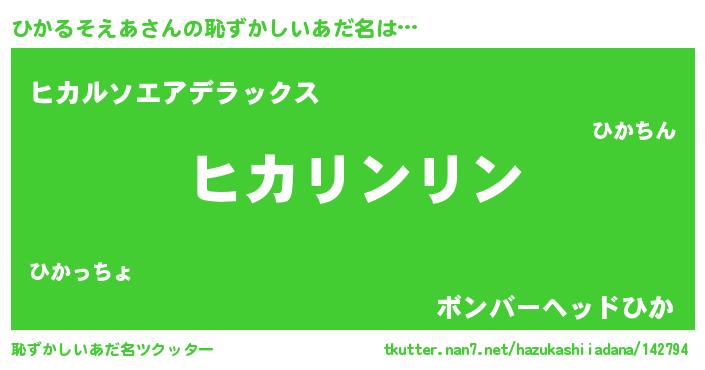 | ヘコむあだ名 | 『ひかっぺ』『ひかるそえあ(笑)』 |