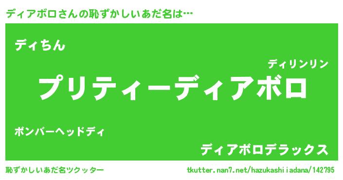 | 男性向けラノベタイトル風あだ名 | 『ディアボロの憂鬱』『緋弾のディアボロ』 |