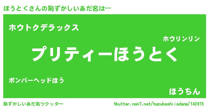 | ヘコむあだ名 | 『ほうふぇ~』『ほうとく(遠い目)』 |