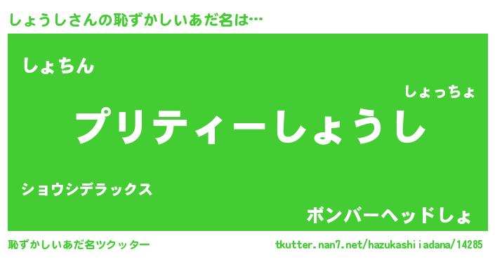 | 意味不明あだ名 | 『ペロリンしょうし』『永久保存しょうし』 |