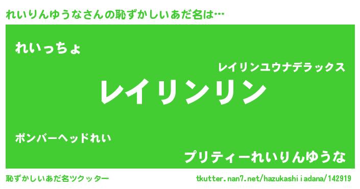 | 意味不明あだ名 | 『とにかく怪しいれいりんゆうな』 |