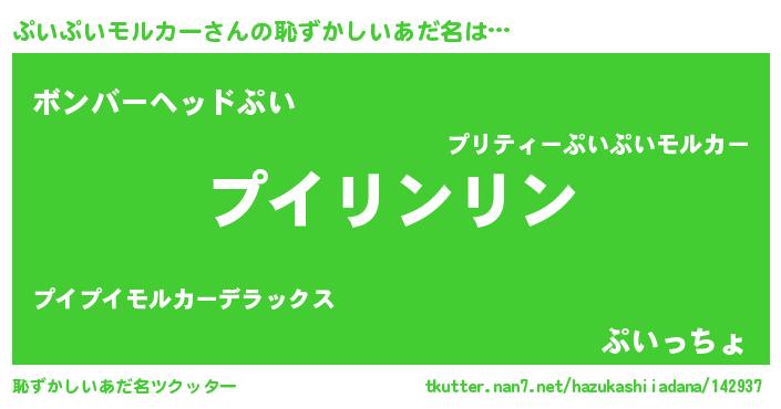 | 意味不明あだ名 | 『とにかく怪しいぷいぷいモルカー』 |