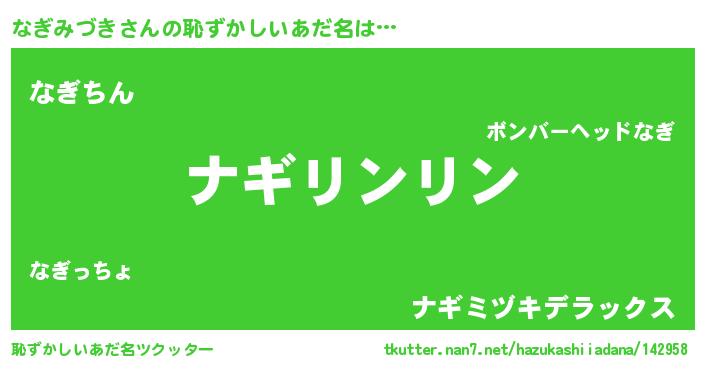 | ヘコむあだ名 | 『なぎぷりん』『なぎみづき(小並感)』 |