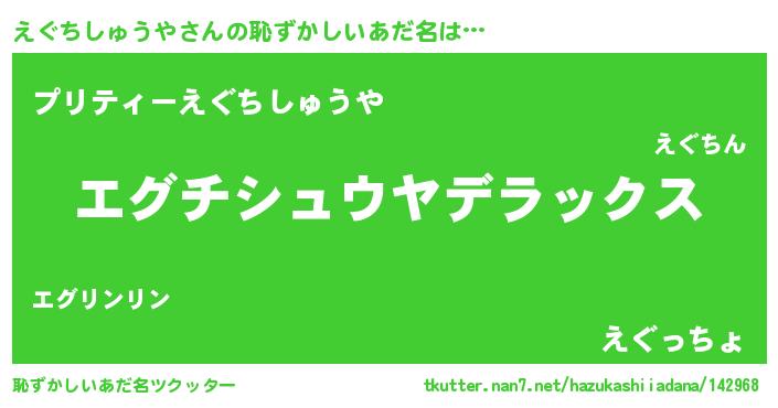 | 意味不明あだ名 | 『自称えぐちしゅうや』 |