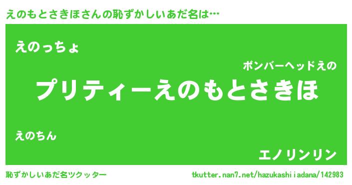 | 男性向けラノベタイトル風あだ名 | 『えのもとさきほの憂鬱』 |