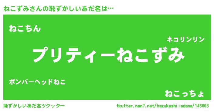 | 意味不明あだ名 | 『ペロリンねこずみ』『永久保存ねこずみ』 |