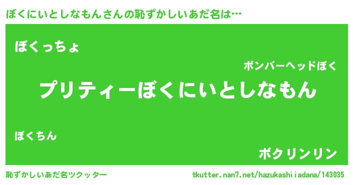 | 意味不明あだ名 | 『めかぶ科ぼくにいとしなもん属』 |
