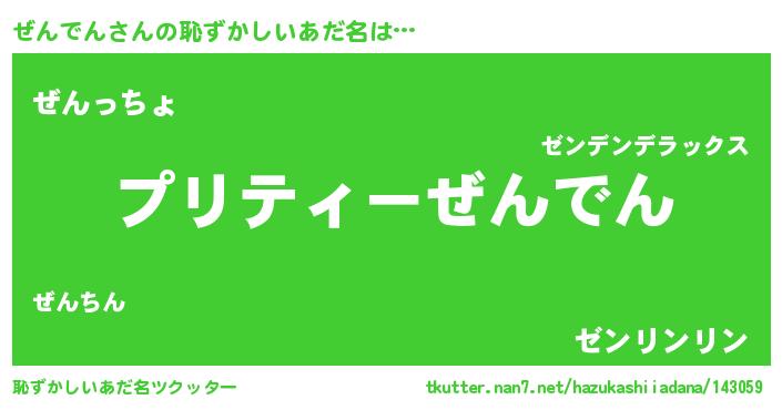 | 意味不明あだ名 | 『ペロリンぜんでん』『自称ぜんでん』 |