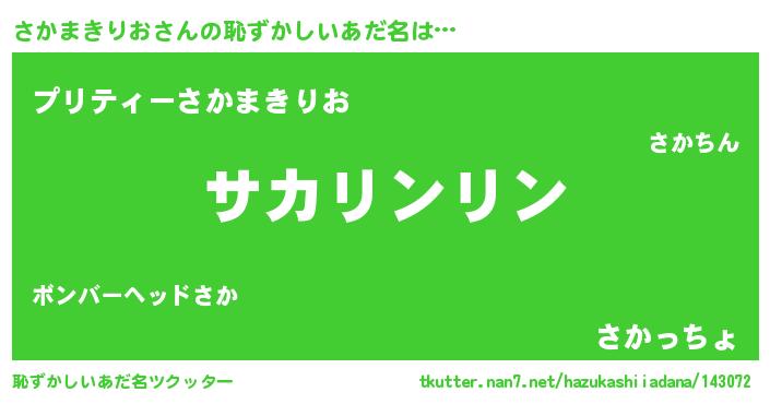 | 意味不明あだ名 | 『とにかく怪しいさかまきりお』 |