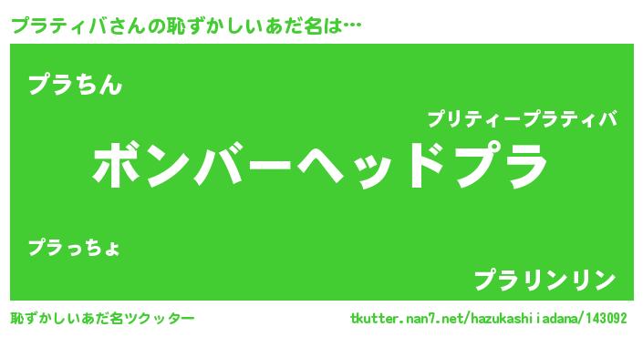 | ヘコむあだ名 | 『プラティバ(震え声)』『プラを』 |