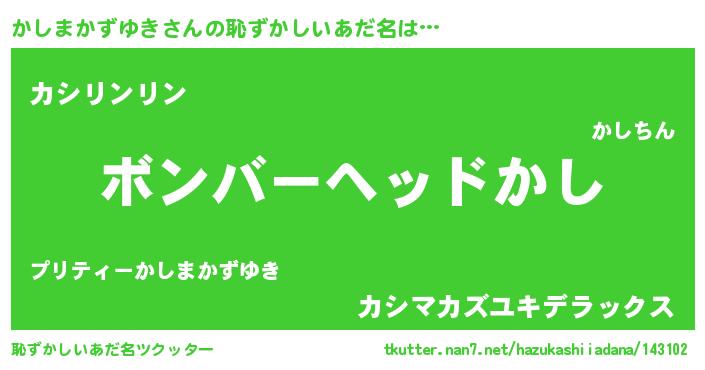 | 男性向けラノベタイトル風あだ名 | 『ノーゲーム・ノーカシマカズユキ』 |