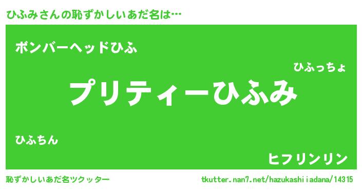 | ヘコむあだ名 | 『ひふにー』『ひふっちょ』 |