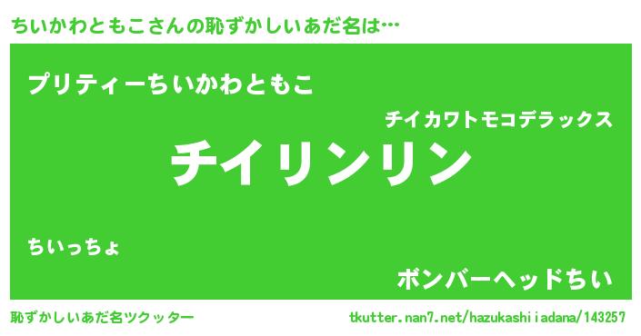 | 意味不明あだ名 | 『とにかく怪しいちいかわともこ』 |