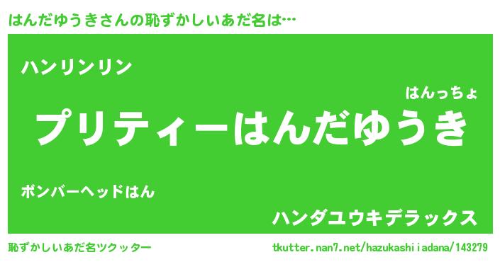 | 胡散臭い通販商品みたいなあだ名 | 『必ず成功するブレスレット…その名も「はんだゆうき」』 |