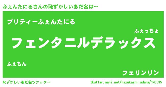 | 意味不明あだ名 | 『住所不定無職ふぇんたにる(8歳)』 |