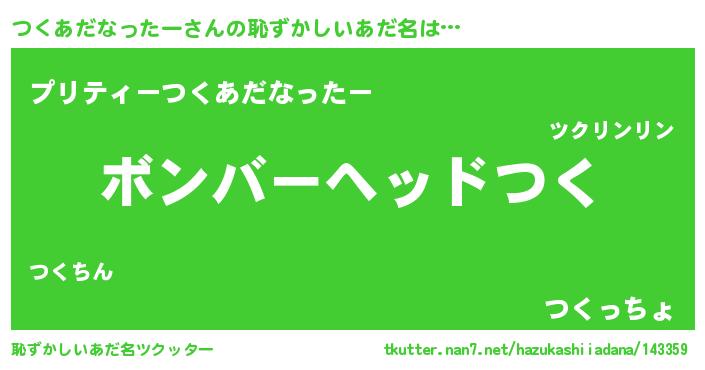 | ポケモン風あだ名 | 『ツックウザ』『ツクチュウ』 |