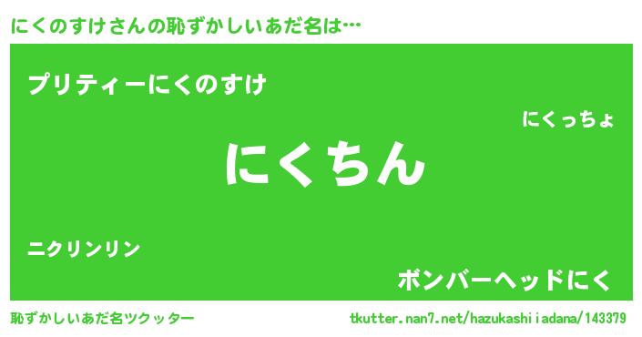 | 男性向けラノベタイトル風あだ名 | 『にくのすけという概念が存在しない退屈な世界 』 |