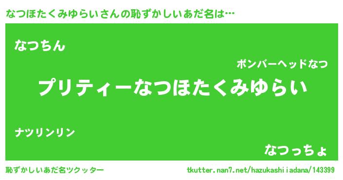 | 意味不明あだ名 | 『つくし科なつほたくみゆらい属』 |