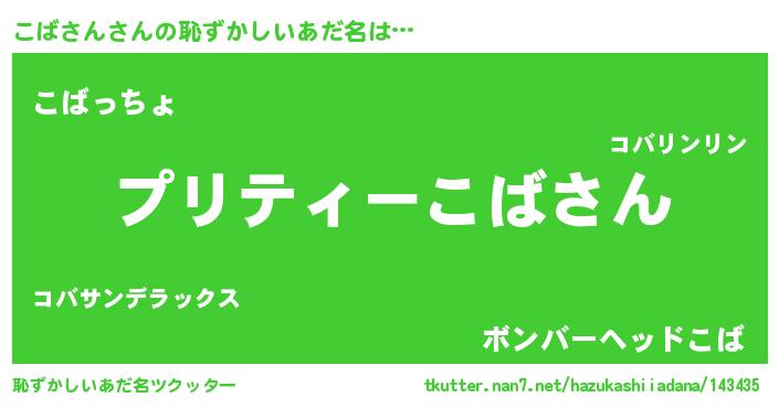 | 男性向けラノベタイトル風あだ名 | 『こばさんの憂鬱』 |