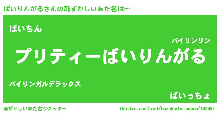 | ヘコむあだ名 | 『ばいにゅー』『ばいりんがる(笑)』 |