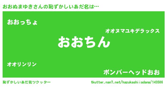 | 意味不明あだ名 | 『永久保存おおぬまゆき』 |