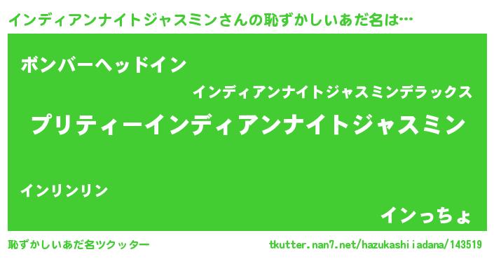 | 欧米人風あだ名 | 『マイケルインディアンナイトジャスミン』 |