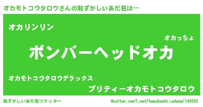 | 男性向けラノベタイトル風あだ名 | 『ノーゲーム・ノーオカモトコウタロウ』 |