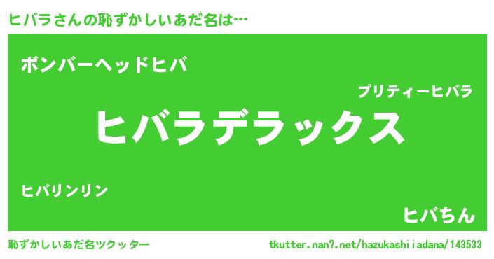 | ヒーロー風カッコイイあだ名 | 『ウルトラ戦士ヒバラ』『仮面ヒバダー』 |